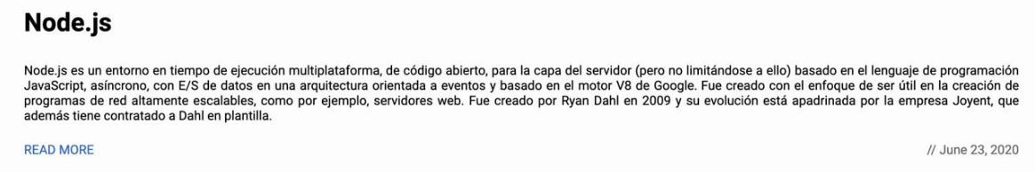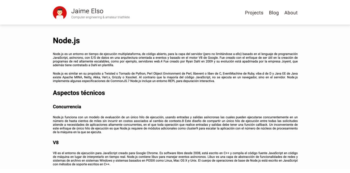 In illustrations 17 and 18 we can see the same post with the same text. Illustration 17 is my web page generated with the CMS developed in this TFG. Illustration 18 is a page generated by WordPress with the same content as the article on my website.