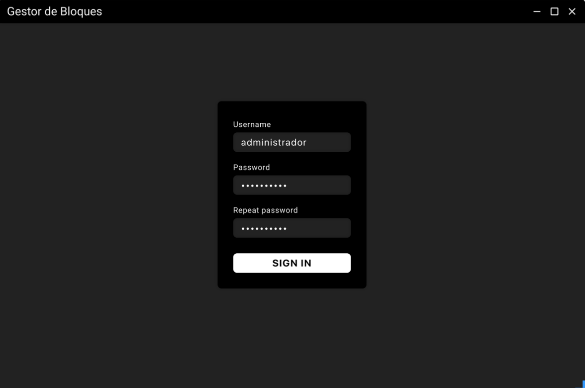 Once the user clicks on "SIGN IN" the first thing we check is that both passwords entered are identical, if so we proceed to generate the user. Generating a user is nothing more than the creation of a JSON file with the data, as this file will reside on the server, we can not store the password in clear, so we pass it through a secure hash function. For this we use the "bcrypt" library, in particular the "hash" method, which uses a hash function of its own implementation, to which we indicate the number of rounds through which the password will be passed in an argument, each of them with a different salt. Once we have the password hash, we generate a "users.json" file where we store all this data and upload it to the server in the "data" directory.